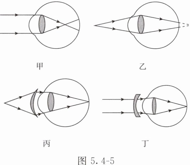 **【典例】**2025年6月6日是第30个全国“爱眼日”,活动主题为“关注普遍的眼健康”,倡导“每个人都是自己健康第一责任人”的理念,增强爱眼护眼意识。如图5.4 - 5所示,能正确表示远视眼成像情况和矫正方法的是(