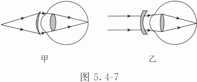 (选填“近”或“远”)视眼,于是他建议爷爷到眼镜店选购一副眼镜,爷爷佩戴眼镜进行视力矫正的原理如图5.4 - 7中甲