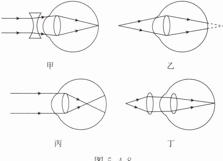 。(均选填“甲”“乙”“丙”或“丁”)(2)近视的小明发现一个有趣的现象,上课时,取掉眼镜使劲眯起眼睛也能看清楚黑板,通过查阅资料,小明了解到眯眼一定程度上改变了晶状体的厚度,使其变