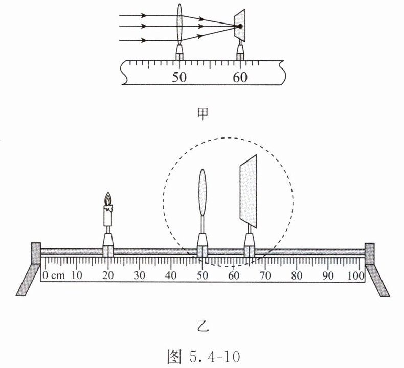 (1)如图5.4 - 10甲所示(图中刻度尺单位:cm),本实验所用凸透镜的焦距为