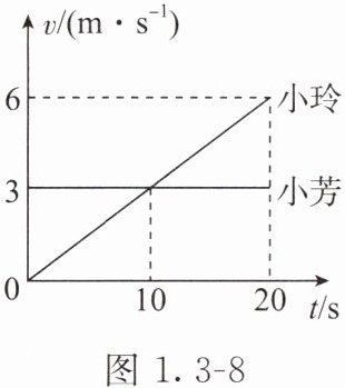 3. 周日做完作业,小玲和小芳在风景如画的湖畔骑自行车,在某段路面上,他们的速度随时间变化的图像如图1.3 - 8所示。下列说法错误的是 (