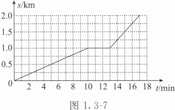 1. 某无人快递车从快递驿站出发,$10min$后到第一个派送点停靠并派送快递,完成任务后再次出发前往下一个派送点,其路程$s$与时间$t$的关系如图1.3 - 7所示。下列说法正确的是 (