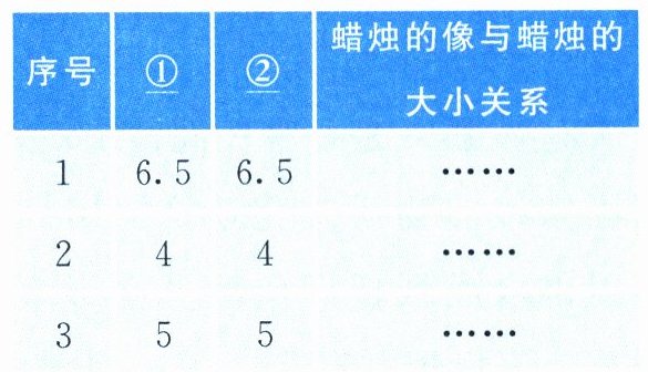 (3)多次改变蜡烛 A 的位置,并移动蜡烛 B 确定像的位置,每次标记出蜡烛 A 和它的像的位置(图章 4 - 5 乙)。表章 4 - 2 是小新设计的实验数据表格,其中①②两处的内容应为: