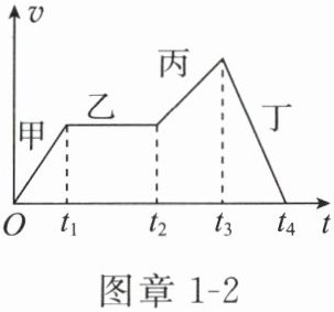 8. 某汽车通过某一平直公路时记录的 v - t 图像如图章 1 - 2 所示,甲、乙、丙、丁四个过程中,汽车做匀速直线运动的是(