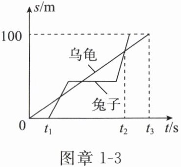 10. 图章 1 - 3 是反映新龟兔百米赛跑的 s - t 图像,请根据图像判断下列说法错误的是(