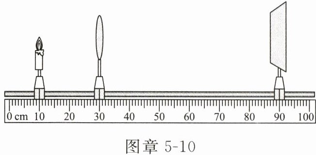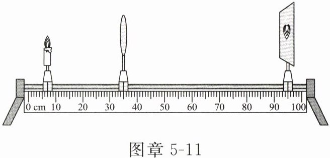 (7)将图章5-11中的蜡烛移到标尺上20 cm到30 cm之间的某一位置,移动光屏,在光屏上
