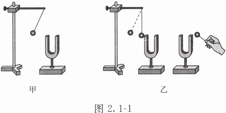 (1)如图2.1-1甲所示,正在发声的音叉将悬挂着的乒乓球反复弹开,这说明声音是由物体