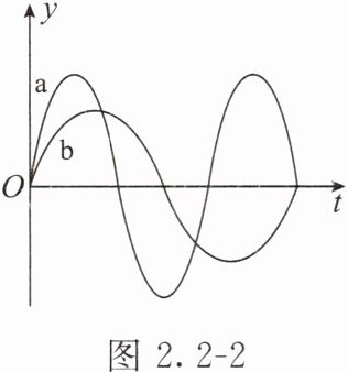 5. 如图 2.2 - 2 所示,小明同学在资料中查到了 a、b 两列声波图,产生这两列声波的声源在振动时,声源振动较快的是