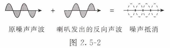 (2)根据图2.5 - 2,请说出喇叭发出的反向声波与原噪声声波的不同点。