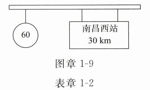 18. 便捷的交通与互联网极大地方便了人们的出行。某年夏天,王爷爷打算带孙子小华自驾到南昌西站,然后换乘高速列车去上海旅游。他们在 8:35 开车出发,同时看到路边如图章 1 - 9 所示的交通标志牌,假设小华通过铁路网站查询了当日高速列车的列车时刻表(表章 1 - 2)。