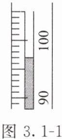 (2)图3.1-1中,温度计在90~100℃之间被分为10个等份,1份代表1℃。也就是此温度计的分度值是1℃。由温度计的液面位置可知,此时的示数是97℃。