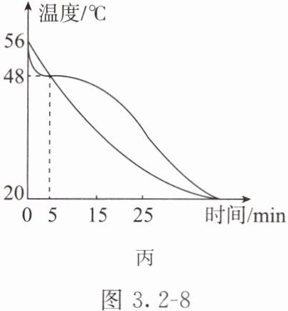 (选填“升高”“不变”或“降低”)。(3)两支试管中分别盛有海波和石蜡,当两者全部熔化后,该实验小组继续研究海波和石蜡的凝固过程。将两支试管从烧杯中取出,静置于空气中自然冷却,每隔2min同时记录一次温度,根据记录数据在同一个图像中画出它们的温度随时间变化的曲线,如图3.2-8丙所示。下列说法正确的是