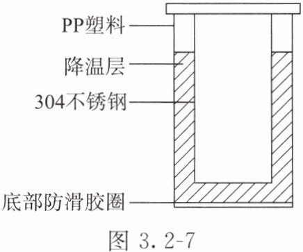 5. 图3.2-7是一个自动控温杯的结构示意图,外壳用较厚的PP塑料制成,内胆使用的是304不锈钢,降温层材质的主要成分是海波(熔点为48℃)。在20℃的环境中,下列说法正确的是(
