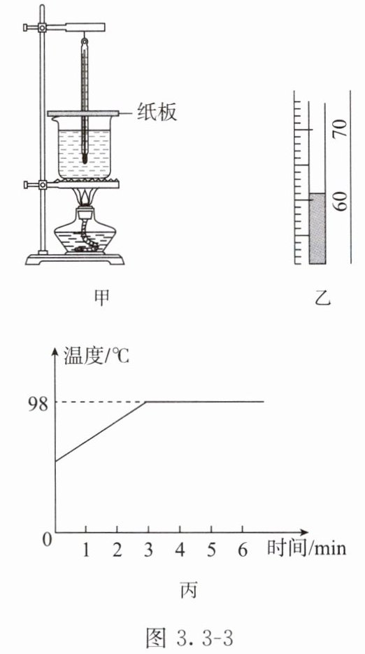 。(2)加热一段时间后,温度计(单位:℃)的示数如图3.3 - 3乙所示,此时的温度为