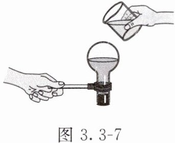 7. 将盛水的烧瓶加热,水沸腾后把烧瓶从热源处拿开,并迅速塞上瓶塞,把烧瓶倒置并向瓶底浇上冷水,如图3.3 - 7所示。关于烧瓶内的水,下列分析正确的是(