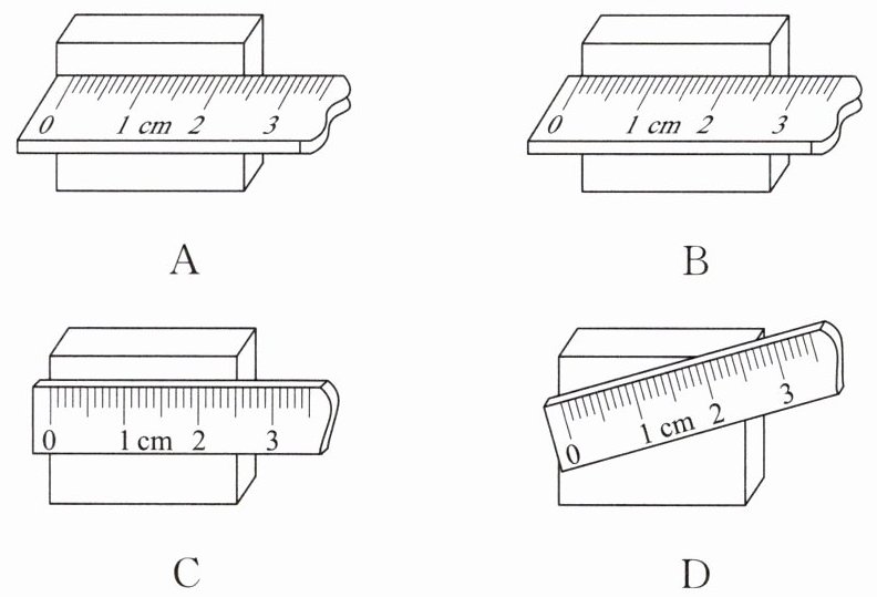 (1)用较厚的木质刻度尺测量木块的长度,下列正确放置刻度尺的是