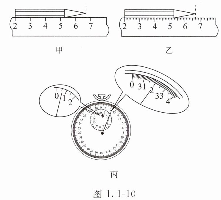 cm。(2)图1.1 - 10丙中机械秒表的示数是
