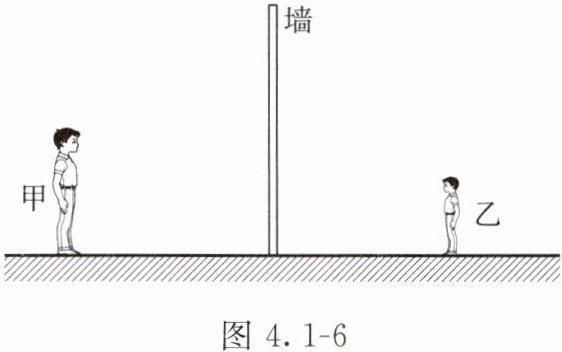 7. 如图4.1-6所示,甲、乙两人站立于墙的两侧,现要在墙上开窗使两人彼此能看到对方的全身。请利用光学知识画出所需最小窗的位置的光路图,并标出最小开窗位置的范围MN。