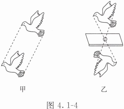5. 沈括在《梦溪笔谈》中记载“若鸢飞空中,其影随鸢而移”,而在纸窗上开一个小孔,使鸢的影子呈现在室内纸屏上,却观察到“鸢东则影西,鸢西则影东”,如图4.1-4所示。下列说法错误的是(
