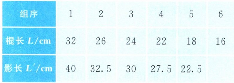 8. 某兴趣小组在老师的指导下研究影子的特点。将一次性筷子分别捆成六组不同长度的木棍,在相同条件下,他们发现这些木棍的影子长短不一,分别测出各组木棍的长度L及其在阳光下影子的长度L',将数据记录在表4.1-1中。