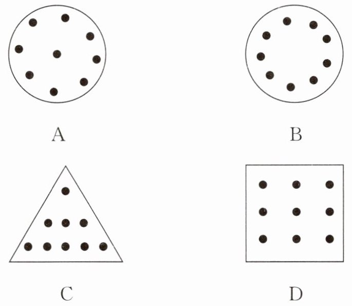 (4)小明想用9盏相同的LED灯(图中用●表示)排列合成一个大光源作为无影灯,下列设计效果最好的是