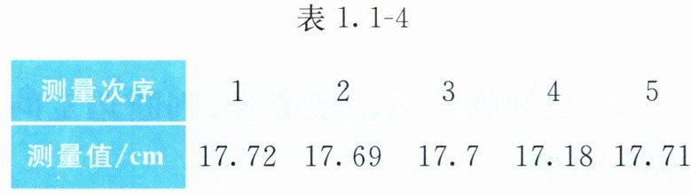 (2)他的测量数据中存在错误。错误数据有17.7cm、17.18cm,前者没有估读到分度值的下一位,后者与其他数据差异较大。