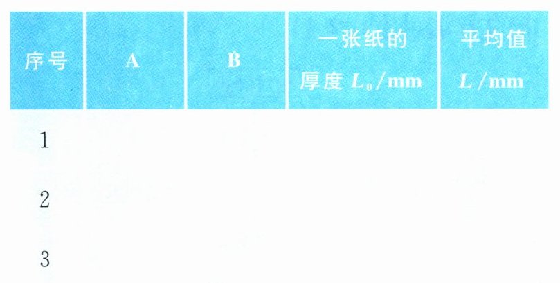 。他做了三次实验,并算出一张纸的厚度分别为0.086 mm、0.088 mm和0.087 mm,则这张纸的厚度可记录为0.087