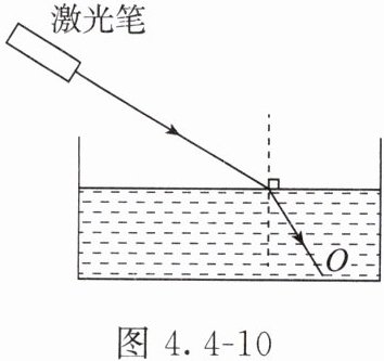 6. 有一圆柱形敞口容器,从其左侧某高度斜射入一束激光,在容器底部 $O$ 处产生一个光斑,如图 4.4 - 10 所示。下列操作将使光斑向左移动的是(