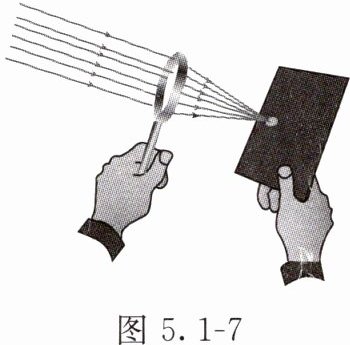 5. 如图5.1-7所示,某同学将凸透镜正对太阳光,在凸透镜的另一侧移动白纸,在距凸透镜10 cm时白纸上出现一个最小、最亮的光斑,该凸透镜的焦距是