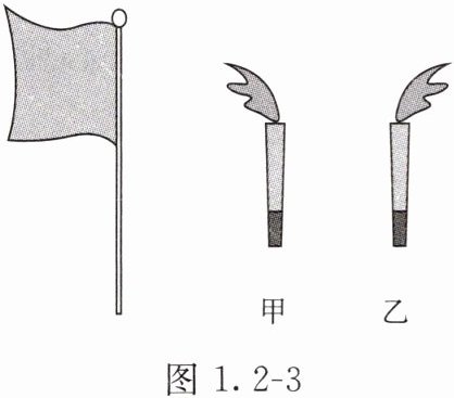 【典例 2】图 1.2 - 3 中是固定在地面上随风飘动的旗帜和附近的甲、乙两支火炬。根据旗帜和火炬火焰的飘动方向,可以判断()