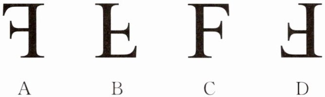 (2)平面镜中物体的像与物对称,即物像左右颠倒,在平面镜中看到的该物体的像的形状为 A。