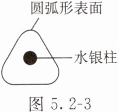 6. 医用玻璃体温计的刻度部分为三棱体,横截面如图 5.2 - 3 所示,其正面呈圆弧形,这样就可看清体温计内极细的水银柱,以便于读数。这是因为圆弧形玻璃的作用相当于