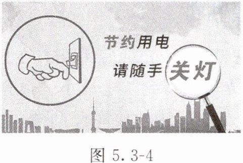 【典例 2】小华通过焦距为 10 cm 的凸透镜看到了提示牌上“关灯”两字放大的像,如图 5.3 - 4 所示。下列说法错误的是(