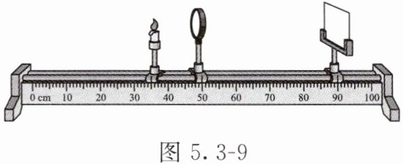 2. 在“探究凸透镜成像的规律”实验中,蜡烛、凸透镜及光屏处于图 5.3 - 9 所示位置时,在光屏上得到烛焰清晰的像。下列说法正确的是(