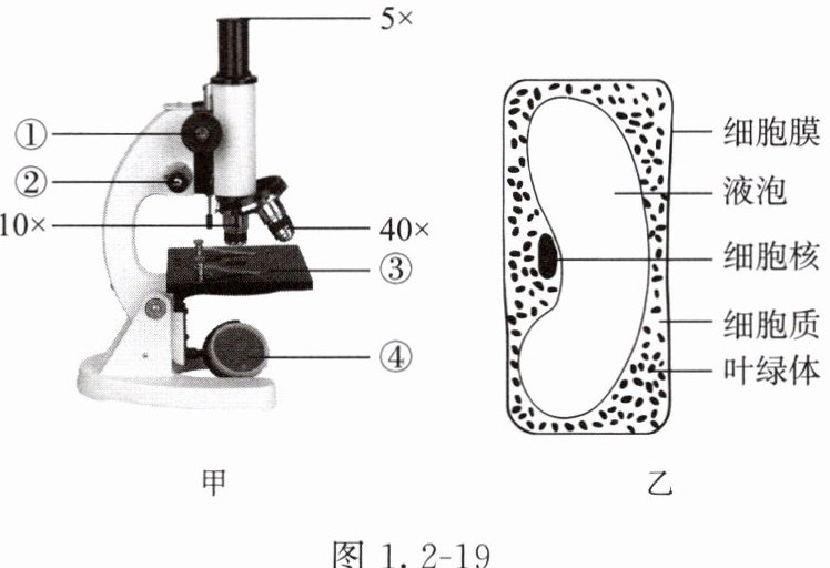 为研究植物细胞的特点,康康用显微镜观察自制的洋葱鳞片叶内表皮细胞临时装片,请结合图1.2-19回答有关问题。