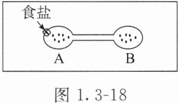 (3) 为探究草履虫能否对外界刺激产生反应,同学们在载玻片的两端各滴一滴草履虫培养液,并将两滴培养液连起来,如图1.3-18。在A侧培养液边缘放少许食盐,一段时间后,可以观察到