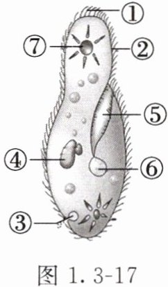 8. 生物学课上同学们用显微镜观察草履虫的生命活动,并绘制了草履虫结构示意图(图1.3-17)。请回答下列问题。