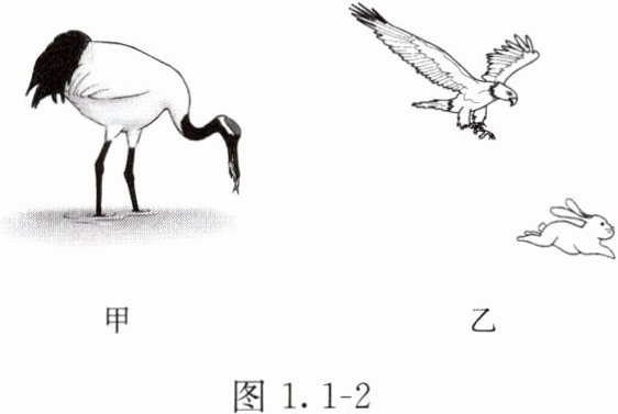 (1)图甲中丹顶鹤捕鱼,说明生物具有的特征是