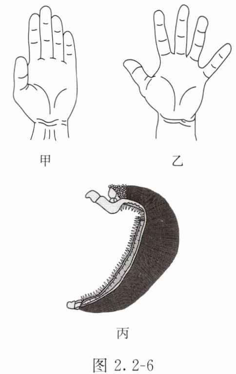 小贝为了说明鱼鳃在水中和脱离水的不同状态,做了以下实验,如图2.2-6所示。