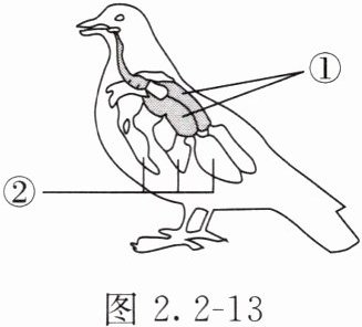 2. 图2.2-13为家鸽呼吸系统结构示意图,下列叙述不正确的是(