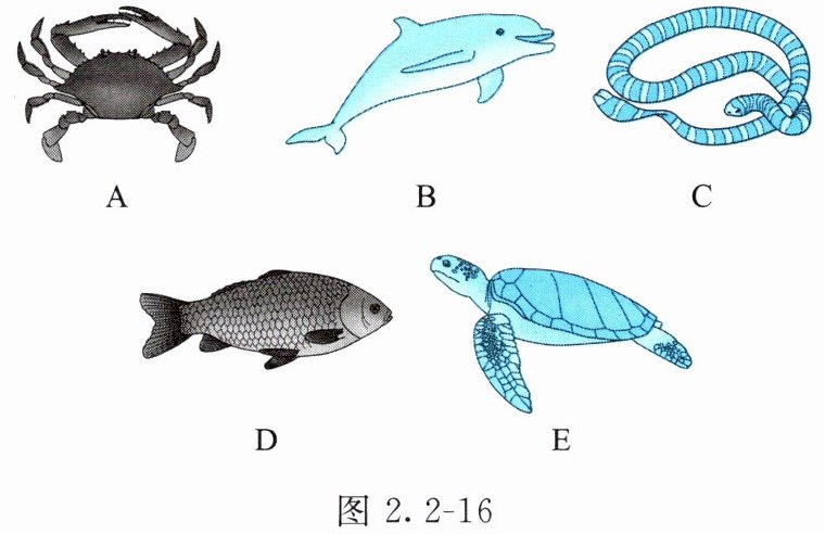 12. 海洋约覆盖了地球表面的71%,海洋中生物物种十分丰富。图2.2 - 16为海洋中的部分生物。