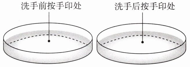 某校生物学兴趣小组的两位同学分别设计了“洗手能否减少手上的细菌数量”的探究实验方案(如图2.3 - 1所示),请分析回答下列问题。