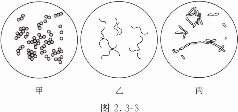3. 图2.3-3是三种不同形态的细菌,图中甲、乙、丙依次是(