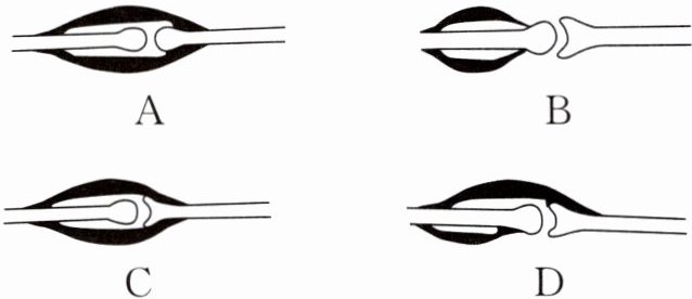 【解析】骨骼肌包括肌腱和肌腹两部分,骨骼肌的两端是乳白色的肌腱,肌腱分别附着在两块不同的骨上。B选项符合题意。
