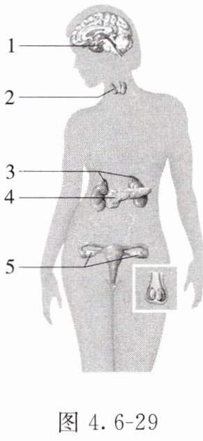 1. 图 4.6 - 29 是构成人体内分泌系统的主要内分泌腺示意图。请据图并结合所学知识回答问题([ ]内填数字):
