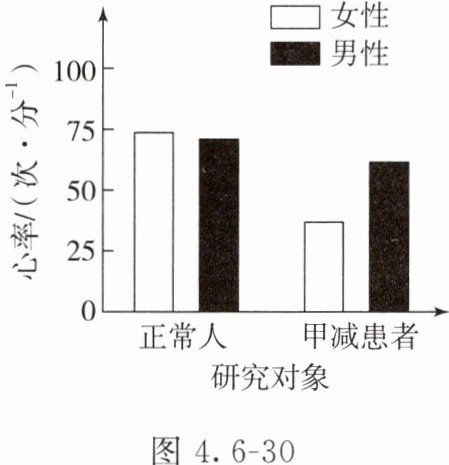 (2)医生测定了正常人和甲减患者的心率并绘制成柱状图,结果如图 4.6 - 30 所示。据图可得出的结论是_______。