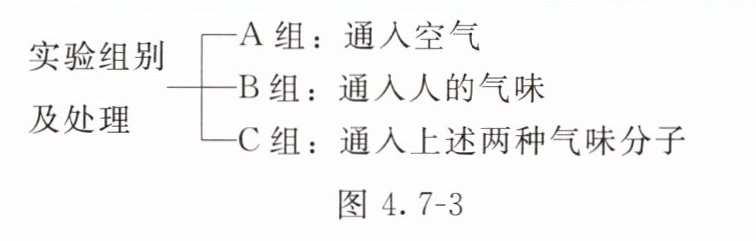 (4)为了研究上述两种气味分子对伊蚊的吸引作用,科研人员进行图4.7-3所示的三组实验。