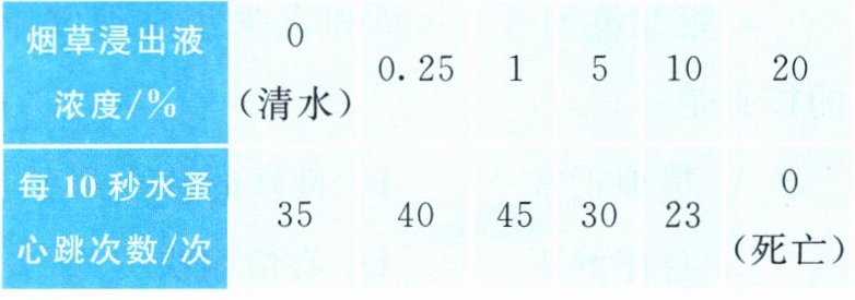 5. 为探究“烟草对人体健康的影响”,兴趣小组的同学们设计了一个观察烟草浸出液对水蚤心率影响的实验,结果如下表。下列关于实验分析不正确的是(