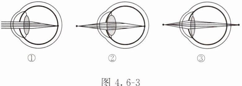 6. 某同学在窗前远眺时,一只昆虫突然飞到眼前,经眼的一系列调节后,他看清了眼前的昆虫。观察图4.6-3,能正确表示该过程中成像原理的示意图依次是(