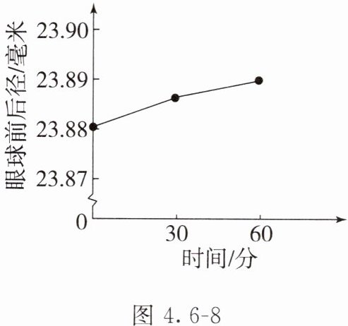(3)科研人员请视力正常的成年志愿者在弱光下阅读,一段时间后,对志愿者的眼球前后径进行测量,结果如图4.6-8所示。与实验前相比,志愿者在弱光下阅读后的眼球前后径